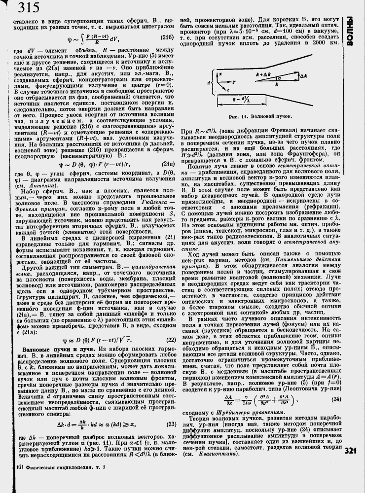 ответствует отд. нормальному колебанию системы (см. Колебания кристаллической реш╦тки). Вычисление статистической суммы и, следовательно, термодинамич. ф-ций такой системы в общем виде невозможно, т. к. результат существенно зависит от конкретного распределения частот по спектру колебаний тв╦рдого тела, т.е. от плотности колебат. состояний #(ш), где й> ≈ частота колебаний. Однако в предельном случае низких темп-р задача упрощается, т. к. возбуждаются только колебания низких частот (ю~£Г/Д, Т ≈ абс. темп-pa). Они представляют собой звуковые волны с линейным законом дисперсии; o>=qA; для продольных и oo~ct& для поперечных волн (cf nct ≈ продольная и поперечная скорости распространения волн, А ≈ волновое число). Т. о., при низких темп-pax дискретная структура кристаллич. реш╦тки не проявляется. Плотность колебат. состояний, т. е. число собственных колебаний в интервале частот от ш до co-^-dco в спектре звуковых волнт равна: