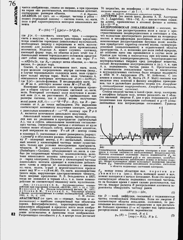чается изображение, сжатое по ширине, а пря проекции на экран оно растягивается, восстанавливая дсйствит. соотношение размеров объекта. с. в. Кулагин. АНАПОЛЬ (от греч. ап ≈ отрицат, частица и polos ≈ полюс) (тороидный диполь) ≈ система токов, эл.-магн. поле к-рой характеризуется вектором анапольного момента