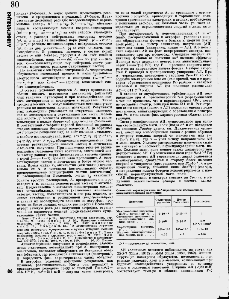 Ашшгиляционное излучение в астрофизике. Наблюдении излучения, возникающего при А. позитронов и электронов, позволяет обнаружить во Вселенной области (объекты), где рождаются античастицы (позитроны), и определить физ. характеристики таких областей.