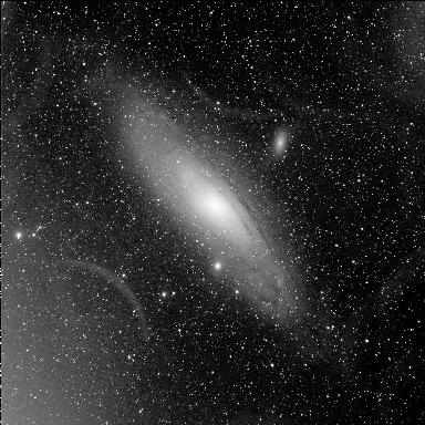 На снимке вы видите одно из первых пробных изображений - галактика Андромеда. (Она помещается в редкий телескоп).