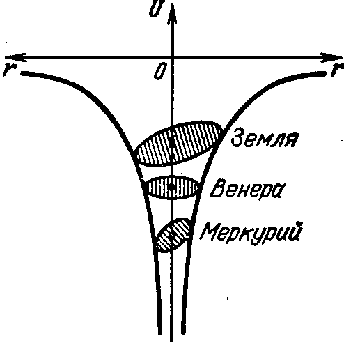 Как же происходит движение в гравитационной воронке? В координатах U (г) движение планет изображается кругами (если орбиты круговые) или овалами (не эллипсами !). Возникает вопрос: почему планеты не скатываются на дно воронки? Конечно, все дело в том, что