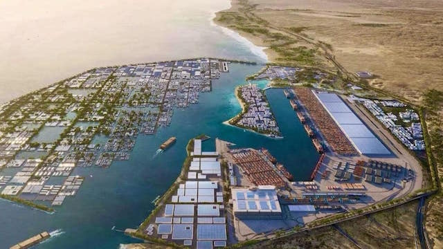 Спутники показали, как идет создание плавучего города Оксагон в Саудовской Аравии