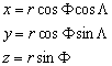 R. Начало этой системы координат совмещают с центром сферы. Координатами являются геоцентрическая широта Ф, долгота