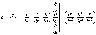 С векторным оператором можно обращаться, как с обыкновенным вектором. Например, скалярное произведение двух операторов набла да╦т оператор Лапласа: