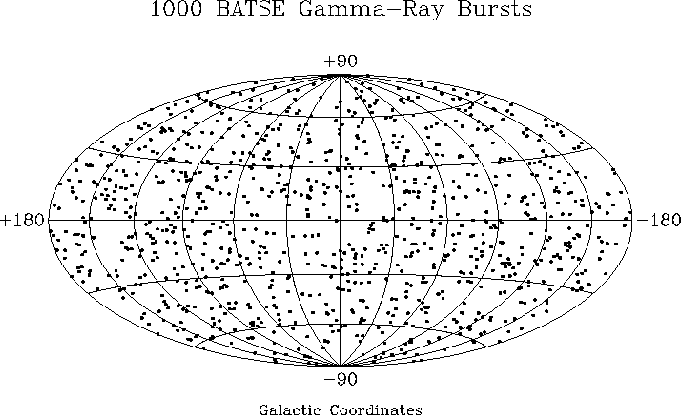 Figure 3.: Карта 1000 гамма-всплесков, обнаруженных с 1991 по 1994 год