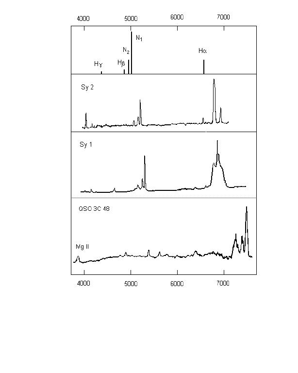наблюдениями: в наиболее близких АЯГ небулярные линии видны на расстоянии