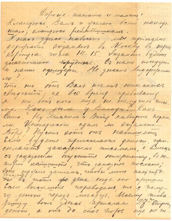 участвовал, но домой не возвращался. Вскоре в письме, в завуалированной