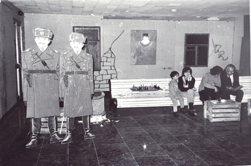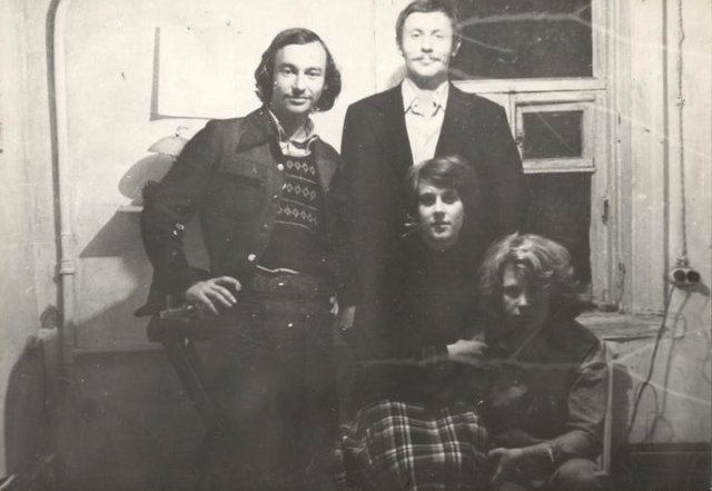 В это время в нашем доме побывало множество людей. Часто приходил мой школьный друг Сережа Миллер, Саша Кузьмин, Юра Шестаков, Володя Исурин, Сережа Нечетайло, Катя Шиндель, Таня Самохина, заходил Григорий Перченков. Посмотрев мою композицию "В ночном саду распустились розы", он высказал свое впечатление фразой из известной песни: "На далекой Амазонке не бывал я никогда". Заходил Евгений Измайлов, Михаил Рогинский, который в это времени работал в маленькой полуподвальной мастерской около музея Изобразительных Искусств им. А.С. Пушкина. Он писал в своем подвале очень хорошие вещи. Это были работы маленького размера на дереве или оргалите с левкасом, выполненные казеиново-масляной темперой: серии "Трамваи", "Окраины Москвы". Картины очень необычные и красивые по живописи, иногда почти миниатюры. Рогинский писал долго и серьезно переживал их, я в них видел музыку Баха. Считаю, что это лучшие работы, которые написал Михаил Рогинский. К таковым можно отнести еще ранние работы, выполненные маслом в 60-х годах: кухонные натюрморты, серии "Штаны", "Примусы", "Дома с трамваями". В 1974 году я уволился из ЖЭКа . 6 и поступил работать художником-декоратором в Московский Театр Оперетты, проработал в этом учреждении около года, но ничего интересного для меня там не было. Я продолжал использовать жилье на Арбатской пл. как свою мастерскую.