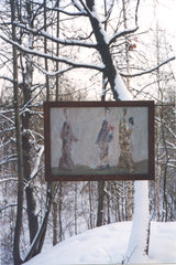 заснеженных деревьях я натянул верёвку, на ней развесил свои картины и
