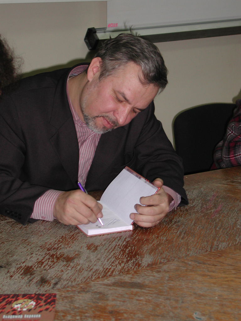 Владимир Берязев - Владимир Алексеевич Берязев родился в 1959 г. в Кузбассе. Окончил Литературный институт им. А. М. Горького, автор поэтических сборников "Окоём", "Золотой кол", "Могила Великого Скифа", "Посланец", "Тобук", "Кочевник" и др. Кроме того, что на сегодня Берязев признаётся главным стихотворцем-эпиком Сибири, он ещё и зам гл.редактора и директор "Сибирских огней", сопредседатель Ассоциации писателей Сибири, секретарь правления СП России. По итогам 2002 года лауреат первой премии МА "Сибирское соглашение" в номинации публицистика - "Сибирь - территория надежд". Новые публикации: в "Новом мире"(N9, 2005) и журнале "Крешатик" (N2-3, 2005), где вышла книга прозы "Сумасбродные мысли о выборе веры", которая пролежала 10 лет неизданной в силу того, что пугала своей откровенностью и пр. и левых и правых, и тех, и этих. Выступления авторов и гостей "Русского переплета"