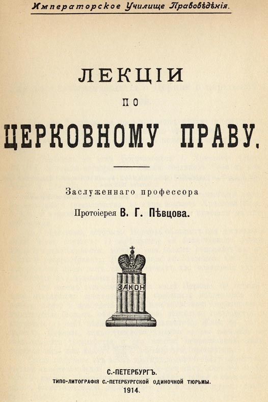 Читаем у Василия Герасимовича Певцова, профессора-правоведа, магистра СПбДА, преподавателя Церковного Права в Императорском правовом училище и Высших Императорских Военных учебных заведениях √ (1914 год) (Лекции по Церковному Праву.