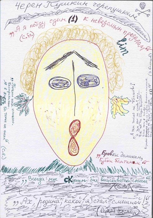Зато ниже "чистый" палиндромический портрет эфирного Есенина - не более серьезный, но и не менее смешной, чем безруковский: