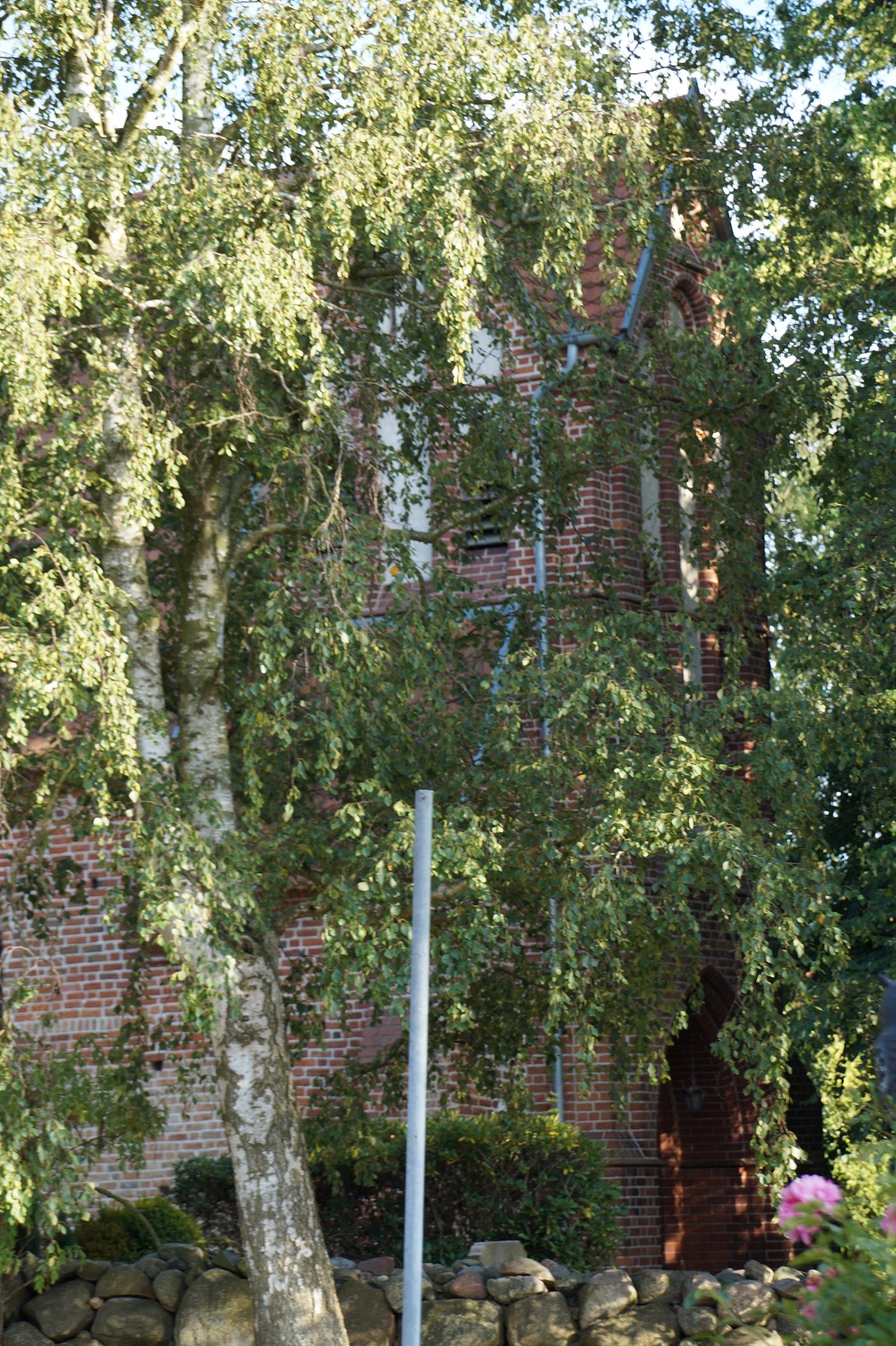 В центре городка напротив трактирчика стоит церковь под "русскими" берёзами.