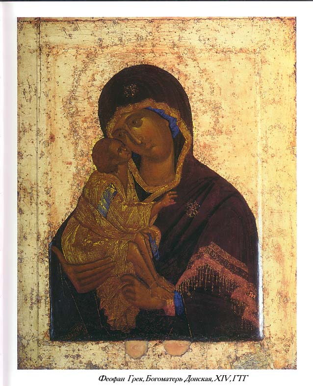 Высокий уровень искусства Московского княжества можно объяснить чувством патриотизма, возникшего в результате победы русского оружия на Куликовом поле. Дмитрий Донской в согласии с Сергием Радонежским много сделали для возвышения Москвы и объединения вокруг нее центрально-русских княжеств. Мощный подъем национального самосознания оказал сильное влияние на расцвет самобытной русской культуры. Греческие мастера, в том числе Грек, в 1395 году переселившийся в Москву, способствовали воплощению героического пафоса победы над татарами. Феофану Греку принадлежит икон-а. Донская Богоматерь (конец XV века). В ней проявились не только колористические способности художника, но и понимание символического значения цвета. В красочной гамме иконы появляется темно-вишневый цвет мафория, контрастирующий с синей повязкой. Лицо Марии и младенца, прописанные красным, синим, зеленым и белым цветом, становятся экспрессивными, сложными по воплощению гаммы чувств.