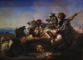 А Раден Салех тем временем покоряет Европу. В 1843-1844 он живет в Австрии и Германии (в Дрездене знакомится с Людвигом Тиком, Робертом и Кларой Шуман, Гансом Христаном Андерсеном, Карлом Гутскоу, Оттили фон Гёте), посещает Италию, Францию, в 1846 вместе с французским художником Орасом Верне (1789-1863) несколько месяцев проводит в Алжире. Эти путешествия расширили его кругозор, дали ему возможность познакомиться с разными художественными школами. Но ближе всего его сердцу приходится манера Эжена Делакруа (1798-1863), и он навсегда останется приверженцем романтизма. В 1848 г. Раден Салех снова в Париже, где становится очевидцем революционных боев.