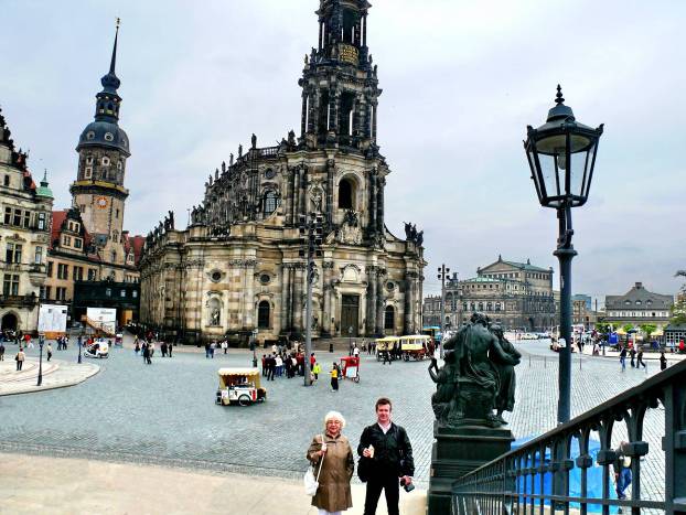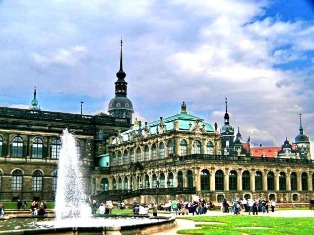панорама ступенчатого Дрездена, дымная от испарений многоводной Эльбы, что
