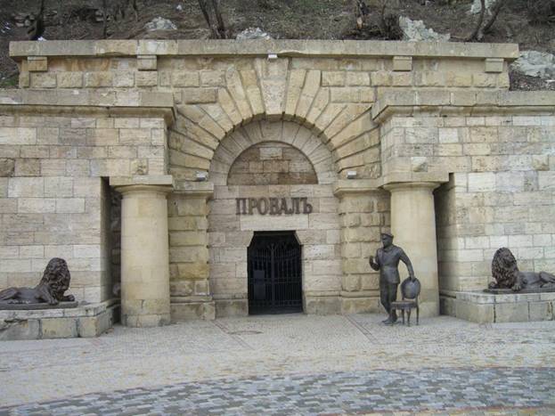 Невозможно побывать в Пятигорске и не посетить пещеру с сероводородным озерцом - знаменитый "Провал". Из "Цветника" от Елизаветинской галереи туда ведёт продолжение улицы Кирова, которая на этом участке называется Провальным бульваром. С 1904 и по 1941 год по нему даже ходил трамвай!