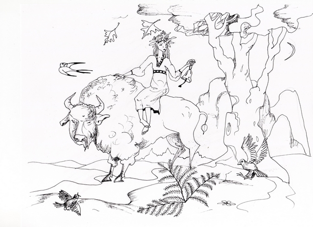 лесных бизонов, самым большим и добрым, девочка, вернувшись на землю,
