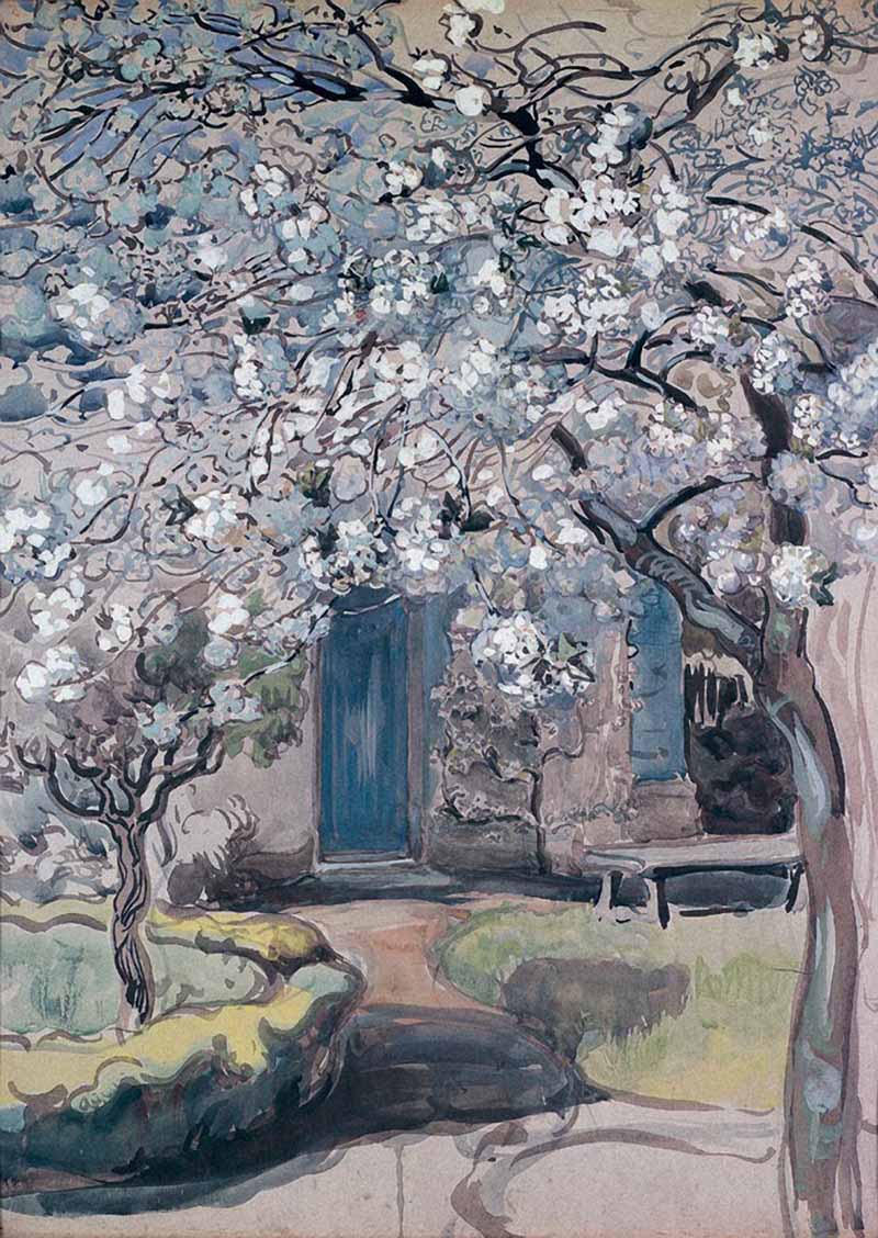 Якунчикова. Цветущие яблони. Дерево в цвету. 1899. Почему нравятся? Разве и тут (как там) не тоже загрязнены и сделаны бледными дополнительные цвета (жёлтый и фиолетовый в какой-то "традиционной RYB-модели” {Википедия})?