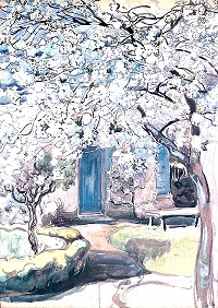 Почему мне там не нравилось, а тут нравится? А? Потому что там была отвлечённость (вам придётся открыть ту ссылку, иначе вы не будете понимать)? А тут – нет? Да не просто нет, а есть противоречие темы (весны, цветения) изображению (тусклятине)… Скажете: там тоже было противопоставление цветка (живого) мёртвому (лицу белому с голубыми оттенками). Но там противопоставление это не ощущалось из-за цитатности какой-то (голова и цветок – оторванные части), не жизненности. А тут вполне себе жизнь. Просто пасмурный день. Настроенческая вещь. Минорная. Или никакой не пасмурный? Ибо тут есть резкие тени от солнца.