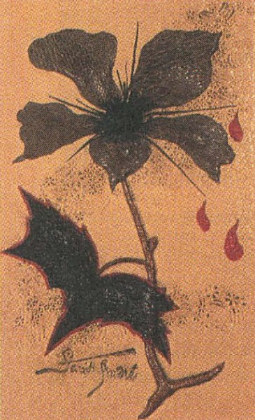 Обложка сборника Ш. Бодлера “Цветы Зла”. Париж. Около 1868 г. А что Сологуб? – В первом стихотворении хвалится иножизнь, а вовсе не смерть, во втором, да, смерть награждается словами с позитивной аурой ("созрели / Для могилы”, “Отдадимся могиле”), как у Бодлера “цветы”, “услаждают”, “смеясь”. Но у Бодлера скрытого смысла нет, а у Сологуба есть, и он – против смерти (что раз – "истлеем” – впрямую прорвалось в текст). И это не прокол, как у Бодлера, а совпадение со скрытым смыслом. Но, не углубляясь, кажется, что оба воспевают смерть и Зло. – Потому и путали декадентство с символизмом, хоть они во всё разные. Идеал декадентства осознаваемый, потому искусственный, индивидуалистский, негативный и не скрытый, идеал же символиста подсознательный, потому естественный, коллективистский, позитивный и скрытый. Декадентство творит произведения прикладного искусства, символист – неприкладного. Первые я в своём экстремизме назвал бы второсортными, вторые – первосортными.