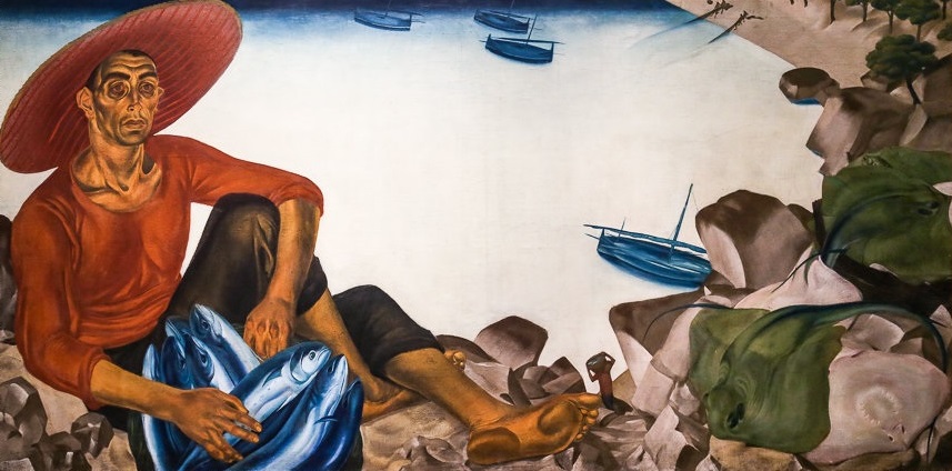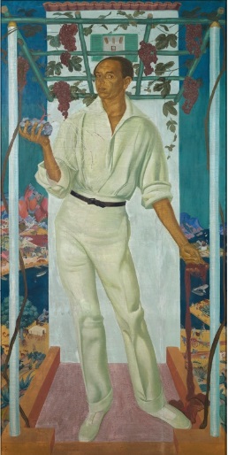 Яковлев. Рыбак. Майорка. 1915. Темпера. "Недостаточно обоснованными оказываются и приемы эпической, панорамной и декоративно-парадной композиции. В результате приподнятость, значительность, красота образов в портрете Р. Монтенегро или картине “Рыбак. Майорка” весьма относительны и соседствуют с прозаичностью” (Коган). Теперь надо сравнивать с декором классицизма (ну, уберу золотую лепнину).