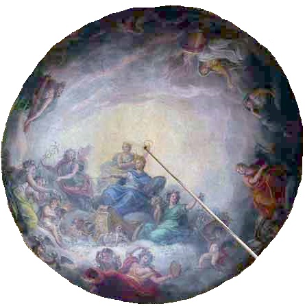 Лебрен. Потолок Салона де ла Пэ в Версале. 1686. Действительно, похоже. В центре – светло, по краям – темнее. И действительно отдают "прозаичностью” и сермяжный рыбак, и его рыба, и грубые камни, да и панорама города с какого-то обвитого виноградом балкона глядя – тоже. – Всё верно у Коган.