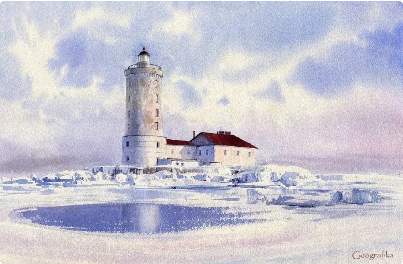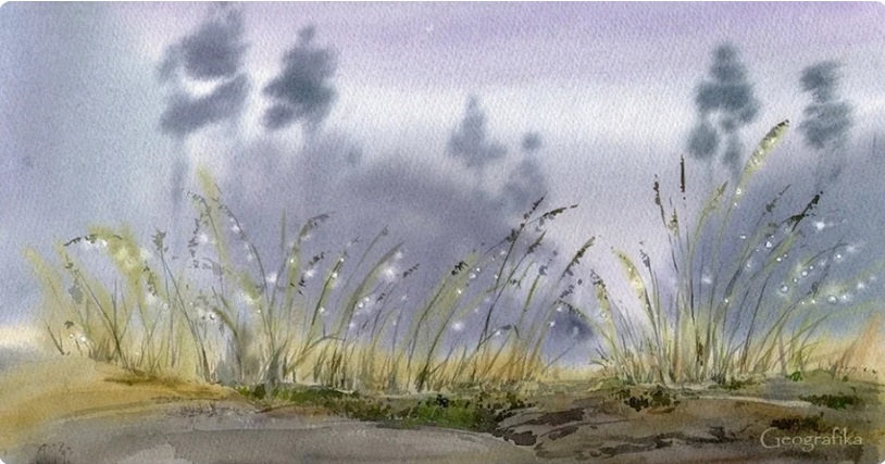 Слова эпиграфа – это слова глубоких ассоциаций, из-за того, что "главное заключается в узкой полоске ослепительно лимонного цвета, которая отделяет хмурое небо от горизонта в закатный час” в романе “Территория”. Они мне вспомнились от неоправданных слов о такой вот репродукции с акварели Михайловой.