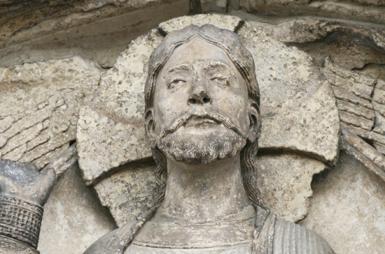 Скульптура Христа на Королевской двери Шартрского собора. 1150. Ну воплощённая ж Вечность! Надмирность┘ и в то же время Такой знает же все-все-все твои несчастья!┘ Мурашки по коже бегут от взгляда на это лицо. Атеисты, представьте на секунду, что Бог таки есть┘ А как тогда чувствовали верующие? ⌠┘фундаментальное примирение между надчувственным толкованием жизни и относительным признанием жизни┘■ (С. 68). И сделано как? √ ⌠┘ограничением изобразительных приемов■ (С. 83). Это как-то лучше чувствуешь тут.