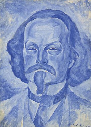 Бруни. Портрет Константина Бальмонта. 191 5. Бумага, гуашь. "Константин Бальмонт пришел в литературу уже вполне сформировавшимся поэтом и самодостаточным человеком. Его дебют в поэзии состоялся в 1890 году, когда автору небольшого сборника исполнилось 23 года. К тому моменту Бальмонт уже успел побывать в ссылке, неудачно жениться и даже совершить попытку самоубийства. Он разочаровался в жизни и пытался найти утешение в творчестве. Именно поэтому ранние произведения Бальмонта лишены оптимизма…” (https://schoolintellectum.ru/analiz-knig/konstantin-balmont-osen-analiz-stihotvoreniya.html). 7 августа 2021 г.