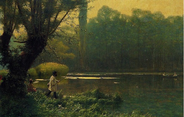 Жан-Леон Жером. Летний вечер на озере. 1895. где всё есть: и дерево на первом плане, как полурама, и не случайность кадра, а соответственного ценности того, что в нём – воплощению уюта. Но. Сислея ж есть внутренняя установка хвалить (за что ни попадя)… – И: "Пейзаж кажется безграничным, чувствуешь, что он не замкнут рамой картины…”. А похвала, которую б надо отдать салонному художнику: "…большая мягкость. Здесь нет резких цветовых контрастов. Там, где они могли бы появиться, художник смягчает их [Жером блеск воды уменьшает узостью этой полосы блеска]", - похвала отдана как раз Сислею. И я б не согласился, что у того именно мягкость. Как раз наоборот – жёсткость: контраст основных цветов (синего и жёлтого). Импрессионистов надо хвалить за отказ от темновидности в живописи, а не высасывать из пальца похвалы ради желания словами ублажить читателя. 15 августа 2021 г.