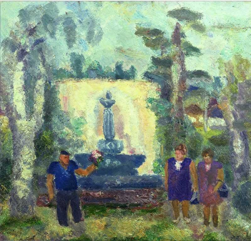 Григорьева. Фонтан. 1969. То есть мне надо как-то суметь не впасть в такую же ошибку с нею, как впали в ошибку иностранцы насчёт самооценки прогрессивных русских писателей XIX века, увидевших, мол, в “Шинели” сочувствие Гоголя маленькому человеку: "Все мы вышли из гоголевской шинели” (https://dic.academic.ru/dic.nsf/dic_wingwords/491/%D0%92%D1%81%D0%B5). Манин, боюсь, именно в подобную ошибку и впал: "Григорьева, пожалуй, первой вернулась в трудные 1960-е годы к примитивистской образности. Областью ее интересов стало переложение на холст обывательского сознания, а нередко и любование тихой радостью маленького человека, будто бы отставшего от времени. Любование предметным обиходом, неброской и, в сущности, униженной жизнью обывателя” (Русская живопись ХХ века, т. 3). Он, правда, пишет о картинах не позже 1968 года. А про дальнейшие: "В 1990-е и последующие годы в творчестве Григорьевой все большее значение приобретает гротеск”. А по этому “Фонтану” выходит, что и раньше – тоже гротеск. Ну, хорошо, притворимся, что мы не видели “Фонтана” (другие ранние невозможно найти в интернете). – В этой каше мазков “Натюрморта с зеркалом” что: не пренебрежение (превратящееся скоро в гротеск), а энергия бунта мещанства за свои права? В самом деле, официально ж мещанство в СССР третировалось. Лишь практически вся политика перерождающихся коммунистов, особенно верхов, была направлена на удовлетворение интересов мещанства. И можно было начинать бунтовать – этой вот кашей мазков… Но какого чёрта она перешла к гротеску? Сам Норштейн, кстати, тоже эволюционировал от апологета мещан (“Сказка сказок” - см. тут) к сильнейшему разочарованию в их низкой духовности (“Шинель”)… Однако в жизни я такой эволюции не встретил (я, правда, очень мало в жизни вращался). 31 июля 2019 г.