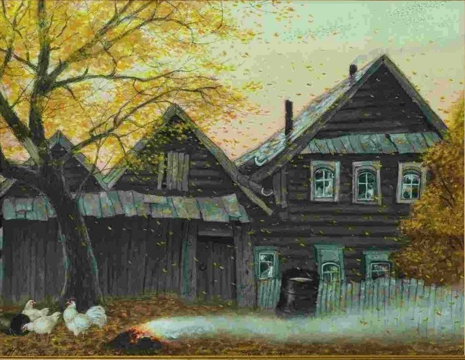 Мир холодных тонов (неба и голой земли) никак не соприкасается с миром тонов тёплых. Даже дым из трубы (как бы часть голой земли), попав в лучи садящегося солнца, почти не изменяет своей холодной белизне.