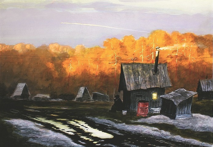 Сажаев. Апрельский вечер на даче Алёхи Мерзлова.