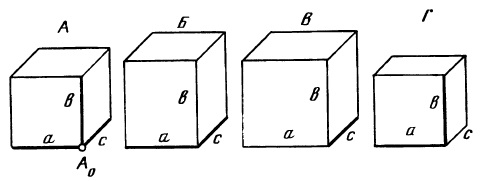 Пусть рисунок А это трёхмерная действительность. Б, В и Г изображения её на двумерной плоскости. С необходимостью искажённое, т.к. принципиально нельзя без искажения перевести трёхмерность в двухмерность. На рисунке Б не искажена грань с, зато выглядеть стало не кубом, а вытянутым вверх параллелепипедом. На рисунке В при неискажённой грани с удалось вернуть впечатление куба. Зато он явно больше действительного. На рисунке Г впечатление куба и сходства его размера сохранено, зато пришлось резко уменьшить относительно действительности грань с. При этом ослаб ракурс и понизилась точка зрения. – В общем, нельзя без искажений. Когда во время Ренессанса открыли линейную перспективу, та тоже страдала искажениями. Хотя бы из-за того, что мы видим двумя глазами, а та притворялась, будто мы видим одним. Но за века господства линейной перспективы мы все научились считать это нормой. А в конце 19 столетия пришло время коренного бунта против норм. Касательно пространства начал этот бунт Сезанн. Сперва – очень невинно: его стали раздражать те действительные искажения, которые все привыкли не замечать. Бунт Сезанна против действительности был радикальным (хоть спусковой механизм может показаться довольно незначительным, личным – очень злой отец). Повлиял дух времени: страшное разочарование от поражения всех революций 19 столетия во Франции, страшная скука от успокоения всех потерпевших поражение – стыдно же: стали обывателями. Скуку усилил рост благосостояния потерпевших поражение: они больше не восстанут, значит. Плюс наука своими успехами низвела веру до положения риз. Хуже того, наука сама впала в тупик, в позитивизм (этакое умение притвориться понимающим что-то, тогда как на самом деле, если копнуть, понимания нет). Это было способно привести к отвращению к самому принципу причинности, на чём всё стоит. И вот выразителю такого, всеотрицающего, духа времени, Сезанну, очевидны изъяны линейной перспективы. И он стал говорить, что рисует не как привыкли, а как он видит. В этом был большой позитивный импульс. Не все способны дойти до мировоззренческого радикализма, до какого дошёл Сезанн. Не то, что не все, а просто мало кто. Им позитивный импульс очень ценен. Они стали восхвалять пространство Сезанна. А теперь, после Раушенбаха, ещё и наука как бы стала на их сторону. Система изображения, более адекватного с тем, как видят люди двумя глазами, оказалась обсчитана. То, что вблизи, люди видят в обратной перспективе (каждый может – если сможет – убедиться: сядьте за письменный стол, откиньтесь от него на стуле и посмотрите как бы сразу на оба края стола, уходящие от вас; вы увидите, что края расходятся, а не сходятся, как при линейной перспективе). Далее. На среднем плане, люди видят аксонометрически (параллельные линии не сходятся). Наконец, то, что вдали, люди видят в линейной перспективе (параллельные сходятся). И Раушенбах всё это обсчитал. И веско пишет: "…позволяет изменить распространенную точку зрения на творчество Сезанна, сформулированную Ф. Наворотным следующим образом: “Перспективная система, которая суммарно ослабила передачу пространственности, дававшуюся точной линейной перспективной конструкцией, - это почти не перспектива, и поэтому уместен вопрос, не наблюдается ли конец научной перспективы уже в живописи Сезанна, а вовсе не позже в 