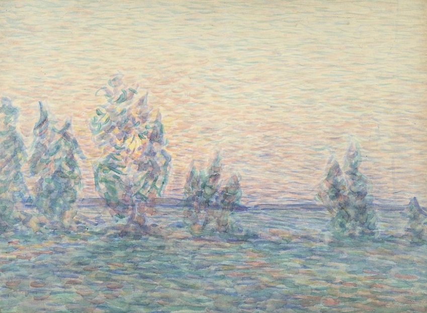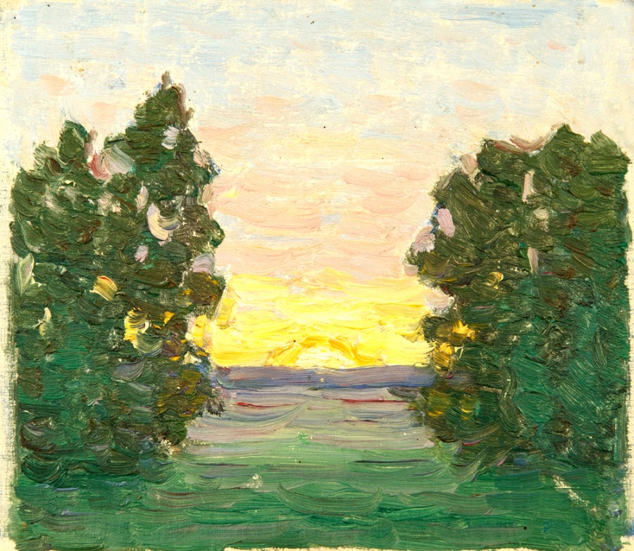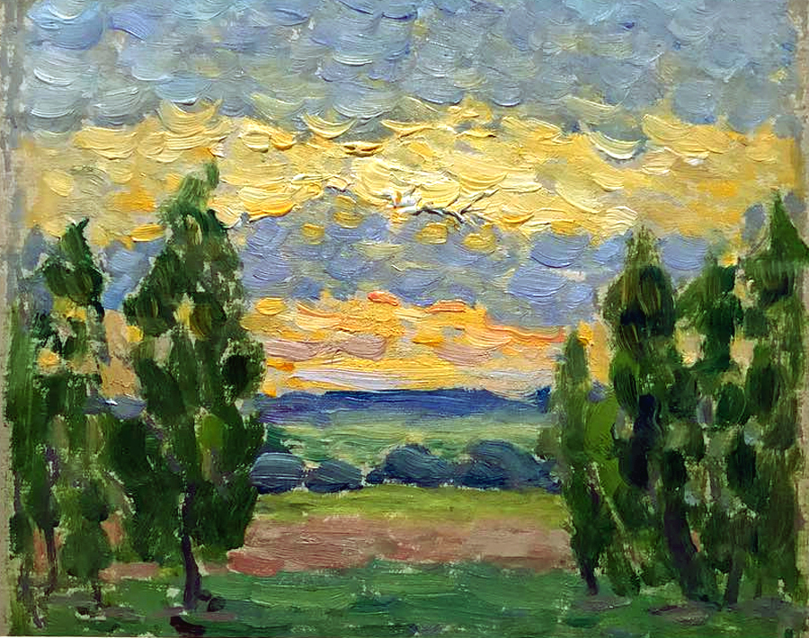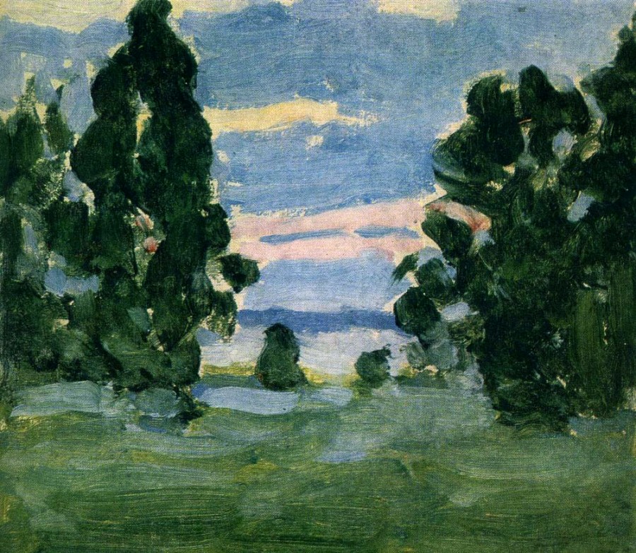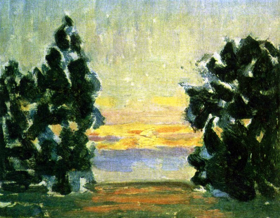 Мещерин. Восход солнца. Этюд. Начало 1910-х гг. А тут что-то об абы какой жизни не хочется говорить – такой океан счастья… Ну? Начался переход к новому импрессионизму? А что стало с нескончаемыми несчастьями? – "В 1910 году Николай Васильевич Мещерин передал некоторые свои картины открывавшемуся Вятскому художественному музею” (Википедия). Ибо… "Время оказалось не очень благосклонным к Николаю Васильевичу Мещерину и его произведениям: художник не упоминается в основных трудах по русской живописи рубежа XIX - начала XX веков, его имя можно найти лишь в сносках отдельных монографий. В альбомах, посвященных русской живописи в собраниях региональных музеев, не воспроизводятся работы Н. Мещерина. Автор исследования о "Союзе русских художников" Н. Лапшин, рассматривая основные направления объединения и останавливаясь на творчестве наиболее ярких художников, имя Н.В. Мещерина приводит в тексте лишь "через запятую". И только в недавней книге В. Манина "Русская пейзажная живопись", в главе о русском импрессионизме, можно прочитать о Н.В. Мещерине как о художнике, начавшем заниматься живописью около 1900 года, чьи произведения почти не сохранились, и в лучших работах которого все же чувствовалась определенная "недоученность". В книге опубликована единственная иллюстрация Мещерина - "Сирень" из собрания Ивановского областного художественного музея” (http://www.plyos.org/stat/ples-levitan-2009-02.html).