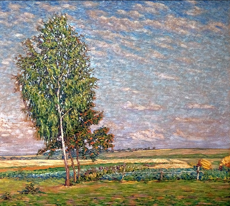 Мещерин. Берёза и рябинки. Начало 1910-х гг. Для меня трудный вопрос, как художник удерживает свой идеал (здесь – хвала абы какой жизни) в подсознательном ранге после того, как он создаст под вдохновением его первые вещи. Казалось бы, идеал должен перейти в сознание, а художник – в своего эпигона. Хорошо, есть слова Пушкина: “Пока не требует поэта / К священной жертве Аполлон”. Умеет-де художник впадать в транс и из сознания идеал гнать обратно в подсознание. Можно себя успокоить и продолжать считать художника художником. Но. Тревожно. Могу ведь и в ошибку впасть. Что если тут вот не изворачивание от нескончаемых несчастий, не импрессионизм, а тихое такое ницшеанство, Абсолют в её скромности – вечной родины своей?.. Но я люблю, за что не знаю сам, её степей холодное молчанье… Ницшеанство ж тоже, как и импрессионизм, ценит миг. Только импрессионизм – за того мизерность жизни, а ницшеанство – за близость – по противоположности – мига к Вечности. Здесь – боголюбимая Россия.