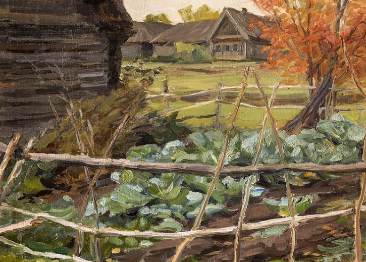 Мещерин. Осень. Капустный огород. 1905. Тут мизерность в несчастной малости этого огорода. Ну и в том, что капуста не ахти какое престижное растение.
