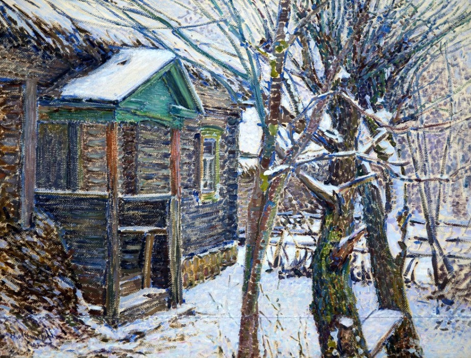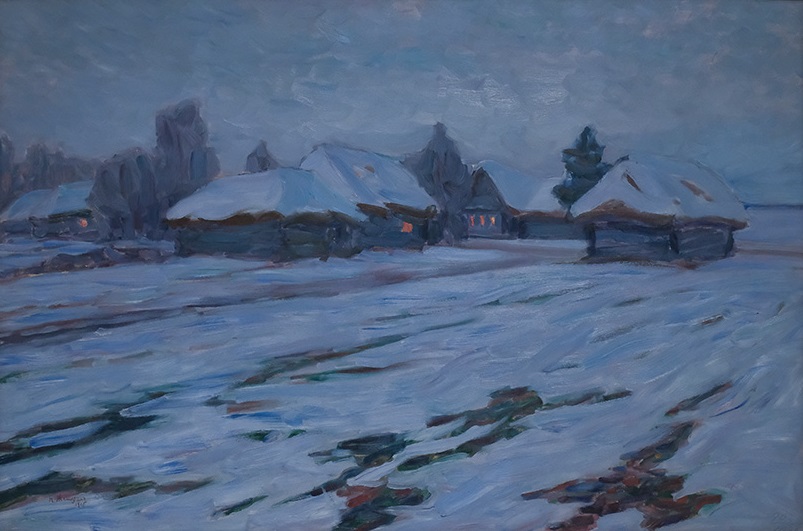 Мещерин. Зимний вечер. Деревня. 1905. Тут его швырнуло в противоположность, в каком суровом месте Россия, северном, тёмном.