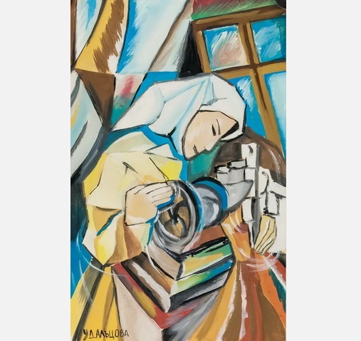 Попробовать, что ли… Попробовать, что ли, понять, что было в голове у Удальцовой, когда она ударилась в кубофутуризм… Начать надо с кубизма. Как он возник? Я буду иллюстрировать (так я про себя думаю) то, что прочёл у Хюбнера, вникавшего в душу кубиста Гриса. Иллюстрировать буду вниканием в душу своего двоюродного брата, покойного уже (не обидится, если я неверно стану его понимать). А понимать я его стану в противоположности Ходже Насреддину: "Ходжа Насреддин с большим трудом отыскал место и втиснулся так плотно, что люди, которых сдавил он своей спиной и боками, крякнули. Но никто не обиделся и не сказал Ходже Насреддину ни слова, а сам он и подавно не обижался. Он всегда любил жаркую давку базарных харчевен, весь этот нестройный гомон, шутки, смех, крики, толкотню, дружное сопение, жевание и чавканье сотен людей, которым, после целого дня тяжелой работы, некогда разбираться в кушаньях: несокрушимые челюсти все перемелют - и жилы, и хрящи, а луженое брюхо все примет, только подавай, чтобы много было и дешево!”. Он мне сам сказал раз, что математиком стал от страха перед жизнью. В математике была для него какая-то стерильность. Как у Гриса, как пишет Хюбнер: "…картины синтетического кубизма: здесь возникает замкнутая в себе система объектов, которые для Гриса являются идеями. Это — идеи, поскольку мир, из которого он, по его собственным словам, заимствовал "элементы реальности", "является не видимым, а представленным". Но именно потому, что в синтетическом кубизме изображается законченная система предметов как идей, исключающая наблюдателя, именно поэтому вновь ослабевает сознание того, что они по существу являются только конструкциями человеческого духа; таинственным способом они вновь неожиданно становятся самостоятельными и получают архетипические, прообразные черты. Идеи, которые Грис писал в расцвете своего творчества, овевает некое дыхание вечного, отдаленного от субъекта начала, образующего мифическую основу и платоновской философии (см., например, гл. VI, разд. 2). Здесь лучится что-то подобное той радости и покою, тому аполлоновскому, что характеризовало платоновскую идею. В его наиболее зрелых картинах предметы — стол, гора, вода, небо — появляются, с одной стороны, как типы-прообразы, но, с другой стороны, они словно находятся в нуминозных [устрашающее божественное присутствие] отношениях друг к другу. Тем не менее, это нежное очарование мифа лишь изредка можно найти в кубистских картинах. Формирующее, творческое величие самого художника остается определяющим” (https://www.litmir.me/br/?b=191560&p=84). Попросту говоря, Хюбнер описал переживание художника (Гриса) от присутствия подсознательного идеала, хоть сознанию в своей содержательности не данного, но сознанием чувствуемого как вдохновение, как бы волю бога. Иначе – принципиально недостижимое метафизическое иномирие, которое тем хорошо (очарование), что возможно художнику дать (а восприемнику – воспринять) образ этого иномирия (кубизм). И всё это есть бегство из насреддиноподобной действительности, с преобладанием Зла, материальности и причинности, не вечного, не отдаленного от субъекта начала. А иномирие, наоборот, обладает свойством вечного, отдаленного от субъекта начала, подобное радости. Хоть и страшной из-за присутствия Абсолюта. Те есть, я хочу сказать, что всё безобразие, какое вос