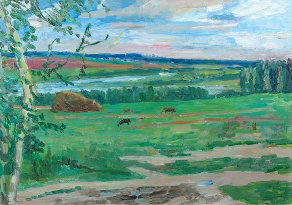 Удальцова. Летний пейзаж. Истринское водохранилище. 1956. Картон, масло. И ещё полмиллиона подобных вещей на сайте https://sovcom.ru/avtori/avtor/%D1%83/77/?p_f_2_1=77&p_f_3_1=77 Так этот её дурастый кубофутуризм хоть был результатом искреннего заблуждения. А это приспособление к власти – совсем же плод расчёта, а никакого не самовыражения. Если б все истринские пейзажи были в музее повешены вместе, я б, конечно, обратил внимание на такое собрание. А так – прошёл бы мимо. Грех, с другой стороны, ругаться на художницу, умершую уже 60 лет назад. Рисовала, как умела. Зарабатывала так. Но зачем ей петь дифирамбы за авангардизм, который уж и вовсе ни уму, ни сердцу? Его даже нельзя заподозрить плодом особого подсознательного идеала из-за колоссального разочарования – так много дурости в этом соединении пессимизма с оптимизмом. 13 декабря 2021 г.