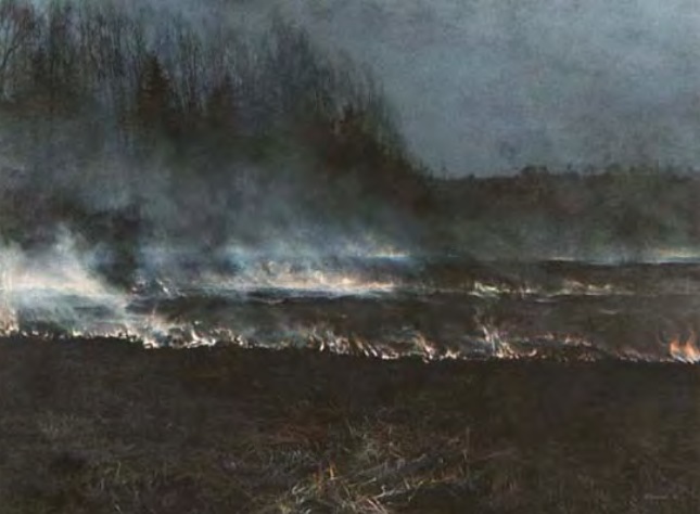 Васильев. Ранняя весна. Огонь в поле. 1996. Холст, масло. Хорошо, я догадался спросить поисковик: “пал травы ночью”.