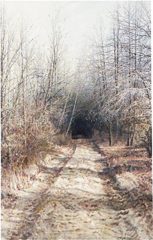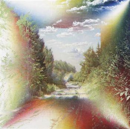 Васильев. Тропинка к озеру. 2001. Холст, масло. Вот. И попробуй, найди, что тут намекает на ЧТО-ТО. Проба удаётся, если сделать несколько перспективных построений.