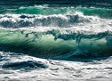 круто загибается к горизонтали дым из трубы корабля, волны выстроились в ряды.