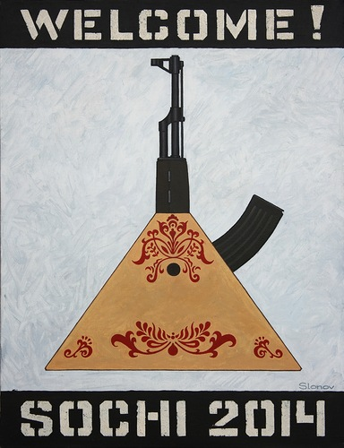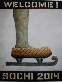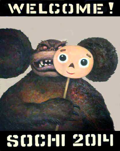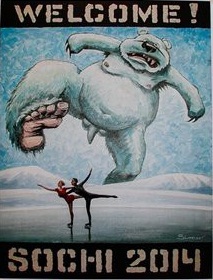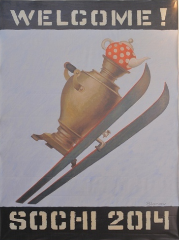 То же с заменой балалайки на лапоть. Но если балалайка не имела негативной ауры, то лапоть имеет - бедность. Она унизительна - из-за колоссального природного богатства страны: ископаемыми и талантами. Бедность, которую принято перед иностранцами прятать. Как потёмкинские деревни строить. Что есть миф, потёмкинские деревни, с лёгкой руки саксонского дипломата Гельбига распространившийся по всему свету и опозоривший Россию. Слонову Гельбига не переплюнуть. Бедность в России не миф. Но в Сочи она будет-таки спрятана - ультрасовременными постройками. Так чтоб иностранцы не обманулись - пожалуйста: плакат. То есть знайте, гости, Россия всё-таки страна отсталая. И материально и общественным устройством. И ведь, правда! Правда, и не рассчитанная на иностранцев. Расчёт √ напомнить своим лишний раз как пагубен путинский режим. С тем же пробиванием для России олимпиады, в том числе. Всё - на имидж, а сердцевина плохая. Даёшь революцию! Оранжевую┘ Будто не существует спокойной российской недостижительности в менталитете - как примера для человечества, как спастись от надвигающейся гибели человечества в экологической катастрофе от перепроизводства и перепотребления, от неограниченного прогресса. Будто неограниченный прогресс - панацея от всех бед, а Россия, соответственно, есть Империя Зла через свою недостижительность. Будто менталитета - нет. Впрочем, и американцам слоновские плакаты могут быть утилитарно полезны. И вот почему. " Estj, konechno, amerikantsi, kotorie dazhe turistami v Rossiju ezdili √ I im ochenj ponravilasj russkaja ekzotika. Kogda ja im govorju, chto bolshinstvo russkih chernoi nenavistju nenavidit Ameriku, oni strashno udivljajutsja. Tut SMI nikak ne mogut donesti eto do chitatelei √ malo kto etim interesuetsja┘ " Это написал американец, выходец из СССР. Так если предположить, что в Сочи до американской делегации будут донесены эти плакаты, люди поймут, к каким врагам они приехали соревноваться в спорте. В общем, прикладная польза от этих плакатов, безусловно, есть: подогреть угасающие протестные настроения в оранжевых слоях общества, просветить общественное мнение рядовых американцев о не устранённой агрессивности России и вообще о том, что это по-прежнему Империя Зла, как говорил когда-то Рейган. А кого просвещать не надо, так хоть укрепить это мнение. Шуткой. Ибо в каждой шутке ж есть доля правды. Нет? (Я знаю в США человека, который уверен, что раз Путин кагэбэшник, то это он заказал убийство Политковской.)
