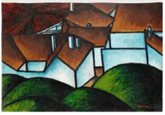 Ласло Мохой-Надь. Пейзаж с домами. 1919. Доска, масло.