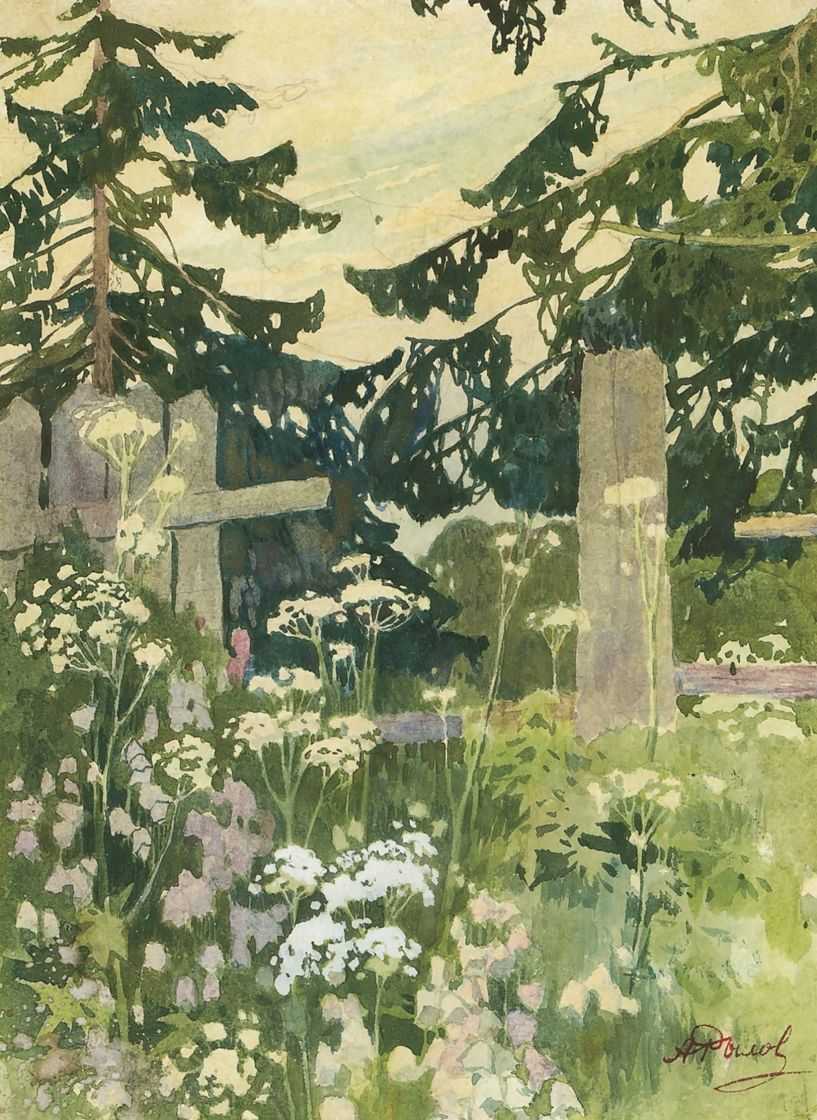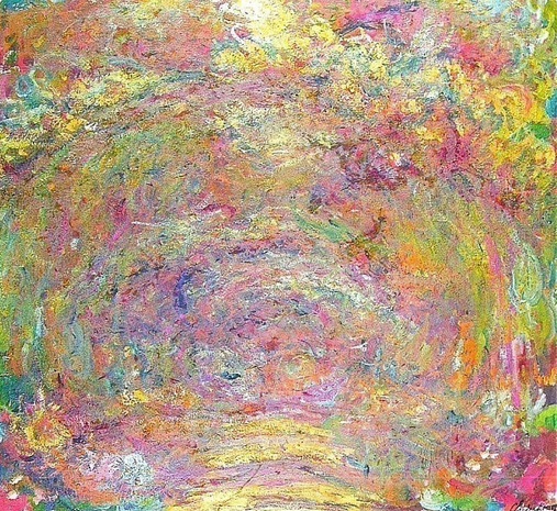 Моне. Дорожка под розовыми решетками. 1918-24. Должен признаться, что остановить внимание на этой акварели Рылова, меня заставила велеречивость авторессы. Меня оскорбили слова: "полуразвалившаяся изгородь — символ недолговечности людских стараний”. Так священник приготавливает умирающего к смерти. К тому свету. Какое это имеет отношение к ассоциативно авторессой присоединённому к этой загробности словам насчёт "торжества вечно обновляющейся природы”? – Она в полусознательном состоянии находилась, когда это писала? Это не может быть оправдано "сугубо личным переживанием”. Она не в позиции художника находится, который выражает себя, а в позиции искусствоведа, который обязан открыть нам художника. Ну и бесит, что, почувствовав, что её понесло, она затуманивает неуместным и публике неизвестным словом "нарратив”. И хоть я очень опрометчив, взявшись и этот скромный пейзаж толковать как выраженный необычной далью сияющий космизм, но пропустить ляп без ответа я не смог. Космизм Рылова бесконфликтный. Он против революции, которая конфликт. Поэтому, пользуясь случаем, хочу присоединиться своим “фэ” к такому факту: