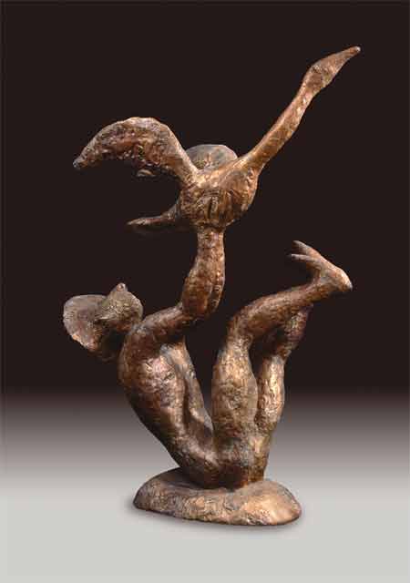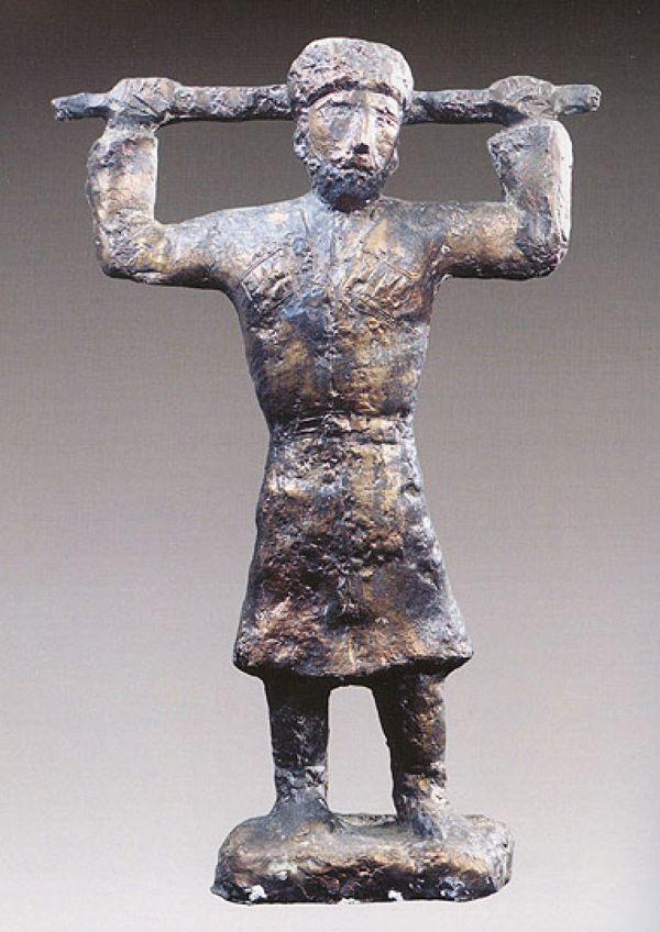 Л.Гадаев. Особенно удивили две его скульптуры: Птицелов и Единоборство. Единоборство человека и судьбы в образе барана. А птицелов ловит гуся и жаждет - взвиться вместе с ним (гусём) - в небо.