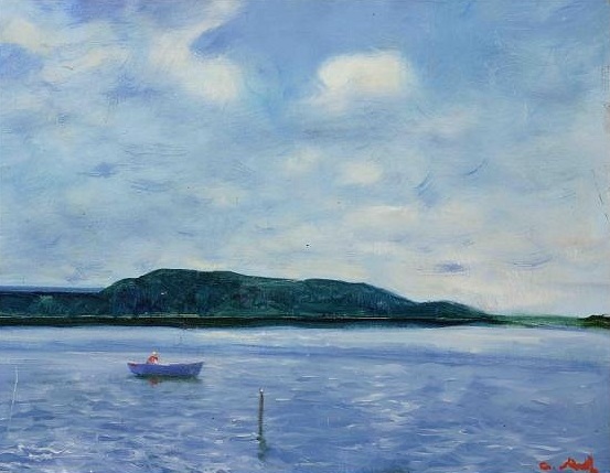 Каюсь, я статью искусствоведа Кудреватого о художнике Мыльникове использую, в частности, как источник названий его произведений. Искусствовед их распределяет по типам композиции, но есть и слова: "…еще один вид пейзажей Мыльникова, созданных в поздний период его творчества”. Где б я ещё нашёл такое отнесение ко времени. Мне ж интересно, ушёл Мыльников к концу жизни от пробуддизма или нет. Можно, тупо искать репродукции по датам. Но я вот выбрал просто статью о нём. К тому ж она даёт и даёт поводы поусмехаться над формализмом искусствоведа. В данном случае усмешка по отношению отнесения типа композиции к дихотомии: "…некий водоем — реку или озеро, обрамленные двумя берегами, — ближним, находящимся на первом плане и дальним, на другой стороне. Интрига данного сюжета заключена в оппозиции или дихотомии этих цветотональных пар — неба и воды, а также двух, разделенных водой, берегов”. Ну и, конечно, анализ этот – без никакого прямого или косвенного выхода к мироотношению художника. Только – отдалённым проблеском (в слове "равновесия”): "…мастера интересует проблема равновесия, достигаемого не только в его привычно читаемой форме — левое-правое, но также и в направлении вертикальном — верх-низ”. Пример картин: “Поздний вечер” (1980), “Белый день” (1979).