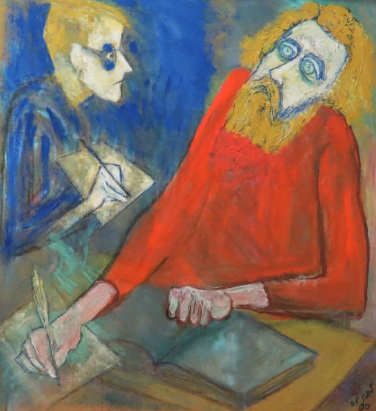 Гликман. Д. Шостакович и М. Мусоргский. 1985–1990. Холст, масло. Мамонова это так смягчила: ""Шостакович и Мусоргский” (1985–1990). Эти беседы-вопрошания, “священные собеседования” имели для Гликмана глубокий смысл, связанный с его пониманием музыки того или иного композитора (это становится понятным, если рассматривать портреты параллельно с чтением воспоминаний художника). Воспринимаемые же однопланово, буквально, некоторые из этих портретов обескураживают своей двусмысленностью. В портрете “Шостакович и Мусоргский”, например, облик Мусоргского и возвышен, и смешон. Великий музыкант, последовательный проводник национально-эстетических принципов музыкального содружества “Могучей кучки” представлен в китчевом образе “русского национального композитора”: в кумачовой рубахе, с пшенично-желтой растрепанной шевелюрой и бородой. При этом в трактовке Гликмана Мусоргский подобен евангелисту — словно внимая Божественному слову, он возводит очи к небесам и прикасается пером к листу бумаги. Юный Шостакович изображен рядом как смиренный ученик, внимательно и благоговейно взирающий на “евангелиста” Мусоргского, готовый записать “Откровение”. Лица, жесты, позы, ситуация настолько гротескны, что в описание картины невольно вкрадывается соответствующая дурашливая “митьковская” интонация: пришли, мол, “митьки” к Ван Гогу.... Но Гликман-то писал не занимательную историю, не придумывал забавный сюжет! Так он разбирался со своим личным восприятием музыки горячо любимых им композиторов — “творческие взаимоотношения Дмитрия Шостаковича с Мусоргским для меня всегда были поводом для размышления”. В некоторых произведениях Шостаковича ему кое-что казалось “вторичным, излишне иллюстративным, уж очень впрямую идущим от Мусоргского”, он считал, что “в блистательной оркестровке Шостаковича Мусоргский как-то потерялся”. В личном общении с Д. Шостаковичем эти мысли, как писал Гликман, он оставлял при себе, “так как был в музыке всего лишь страстным любителем, а отнюдь не профессионалом”. Другое дело “холст, масло” — здесь он мог позволить себе любое высказывание”. Смех в самом деле не едкий. Такой какой-то… Всё настолько еле-еле нарисовано, что вспоминается подсознательный идеал пробуддизма, тихо во всём-всём разочаровавшегося человека. Ибо ничто нельзя изменить. Хоть написано в так называемые времена перемен. На то пробуддизм и экстремистское мироотношение, что выйти из него нельзя, никакие потрясения истории не действуют: поздно. 12 июня 2022 г.
